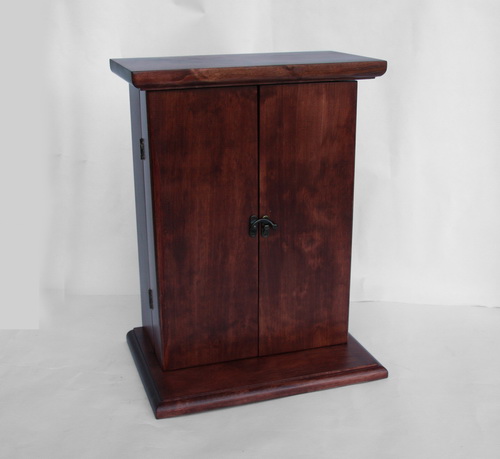 Деревянный мини бар изготовлен из массива березы. Изпользуется как настенный вариант, а так же и ставится на стол. Вмещает в себя бутылку и три бокала. Возможны любые варианты окраски.