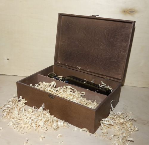 Стандартная коробка для вина имеет внутренний размер длина 36 см, ширина 8 см, высота 8 см. Подходит для стандартной бутылки вина или вытянутой коньяка. Двевесина используется по желанию заказчика, стандартно используем березу. Расцветкой могут быть неокрашенные, тонированые бейцем(подчеркнута фактура) или окрашенные в цвет заказчика. Коробка комплектуется фурнитурой в зависимости от дизайна или пожелания заказчка. Так же возможно украшение защитными железными уголками и железными элементами. Логотип наносится ЧПУ или лазерной гравировкой.